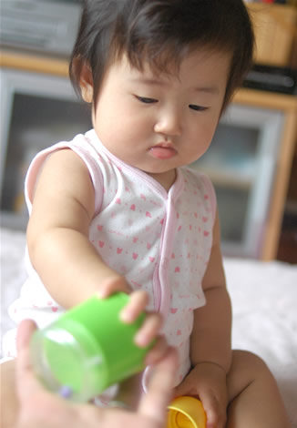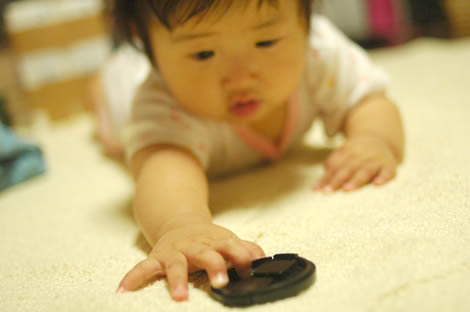 ハイハイは今までだったら、顔を床にこすり付けながら、「オマエはブルドーザーか?」なんて感じだったのが、しっかりした一人前のハイハイになってきてます。