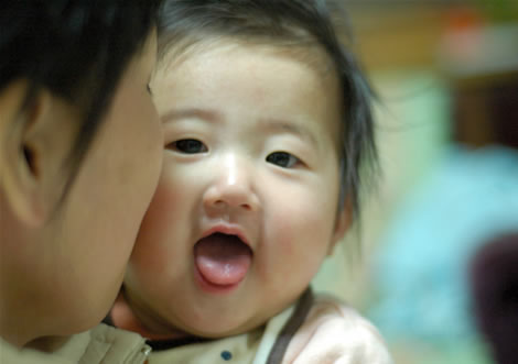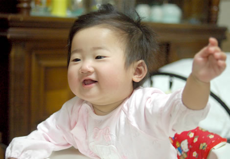 嫁に抱っこされてる時に、「あっ、パパだ!」ってな感じで、